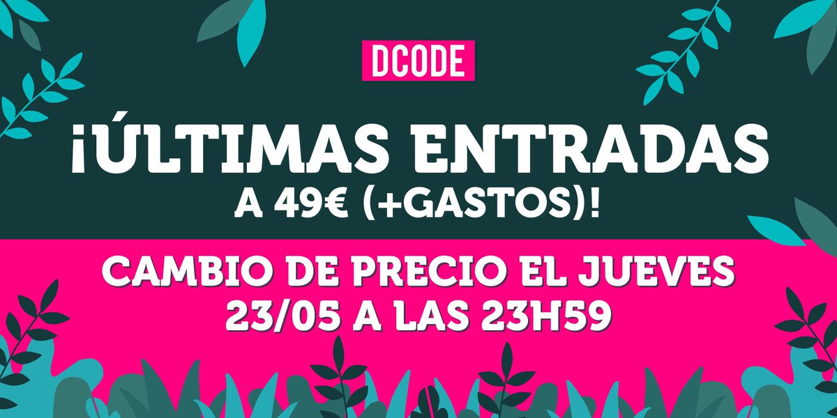 Tu última oportunidad para comprar tu entrada #DCODE2019 al precio de lanzamiento: 49€ (+gastos). En http://www.dcodefest.com
