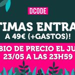 - ¡Aún estás a tiempo de comprar tu entrada para DCODE 2019 a precio de lanzamiento! El jueves a las 23h59, cambio de precio. A la venta en http://www.dcodefest.com